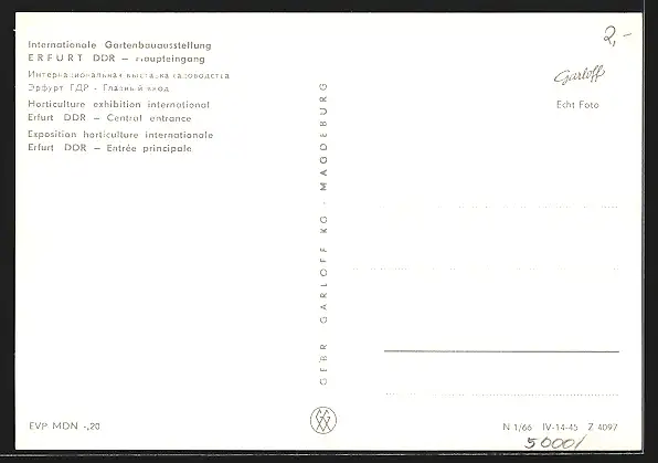 AK Erfurt, I. Internationale Gartenbauausstellung 1961, Haupteingang