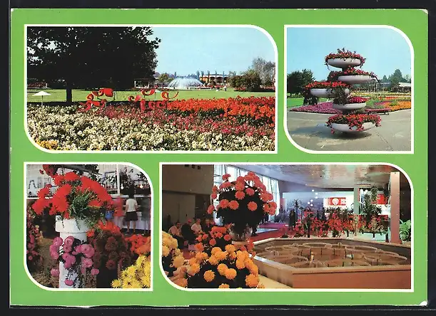 AK Erfurt, Internationale Gartenbau-Ausstellung, Blumen in einer Ausstellungshalle, Aussenanlagen