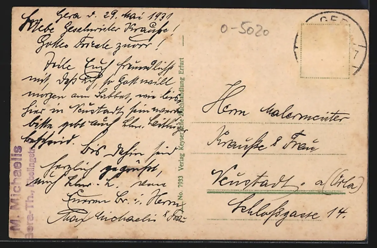 alte Ansichtskarte, gelaufen 1931, Briefmarke entfernt, guter Zustand