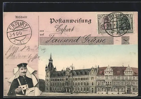 AK Erfurt, Kaiserliches Postamt, Postbote mit einem Brief