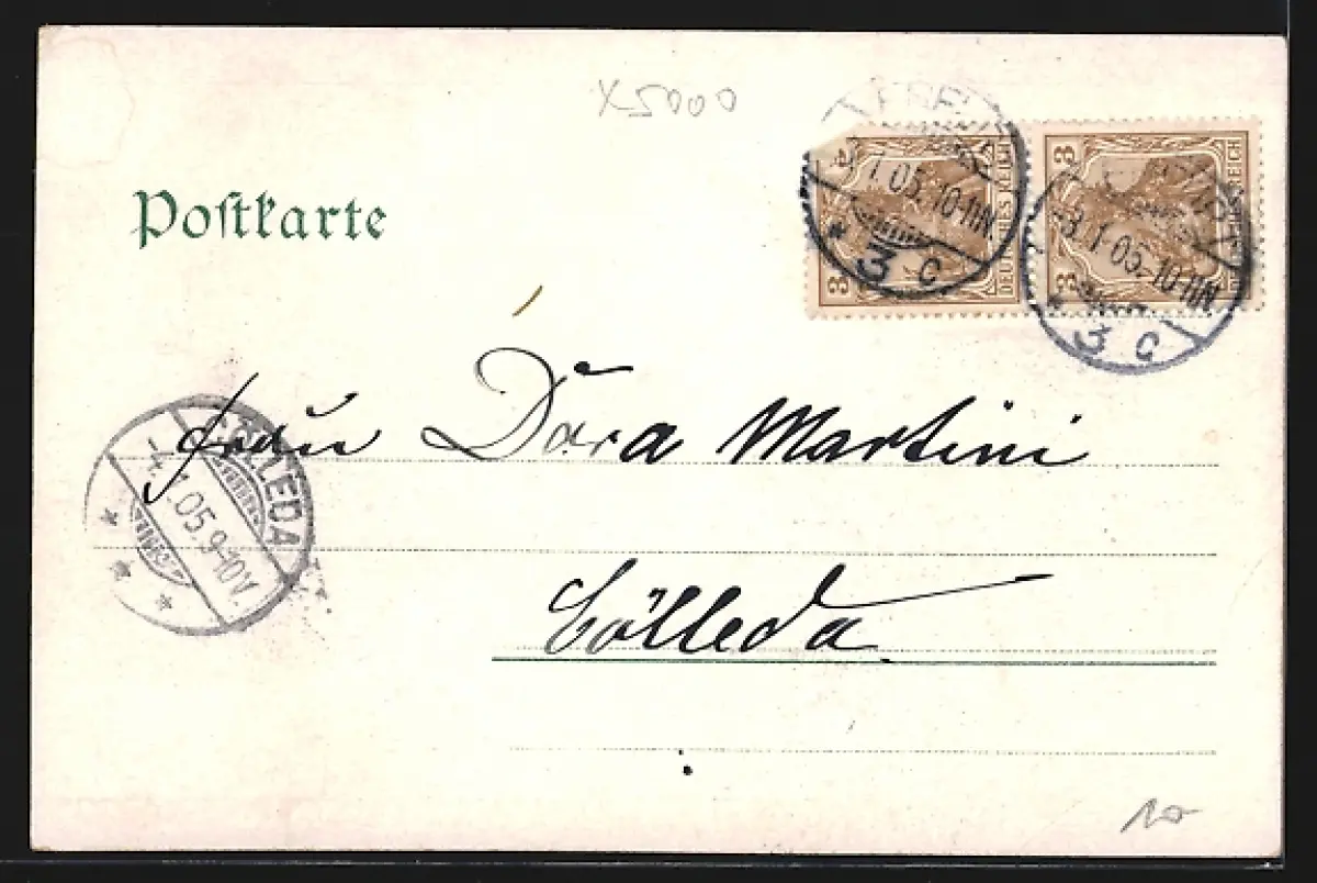 gelaufen 1905, Abriebspur oben rechts, guter Zustand