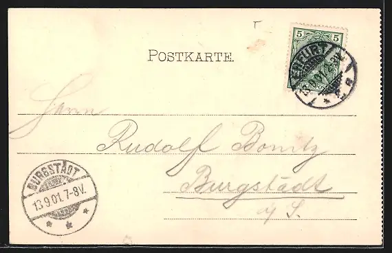 alte Ansichtskarte, gelaufen 1901, Stempelspur, guter Zustand