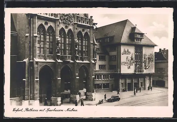 AK Erfurt, Rathaus mit Sparkassen-Neubau