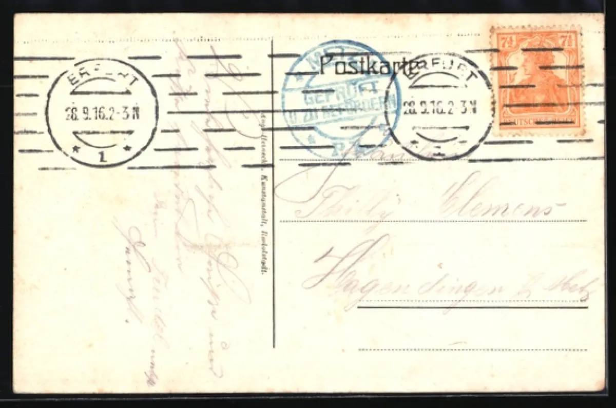 alte Ansichtskarte, gelaufen 1916, Eckknick re. oben, Stempelspur, guter Zustand