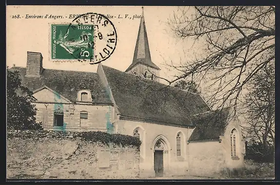 AK Érigné, L`église ancienne avec clocher et arbres en hiver