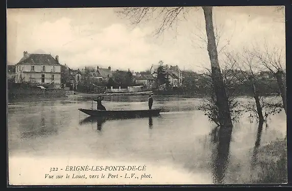 AK Érigné-les-Ponts-de-Cé, Vue sur le Louet vers le Port