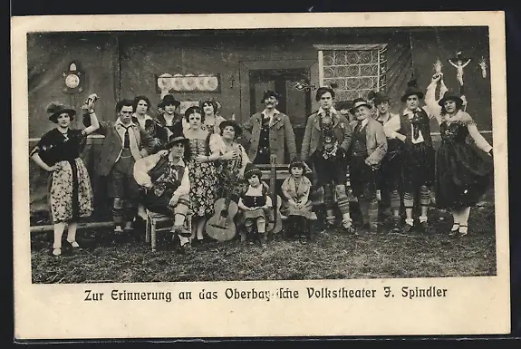AK Erinnerung an das Oberbayrische Volkstheater I. Spindler in Trachten