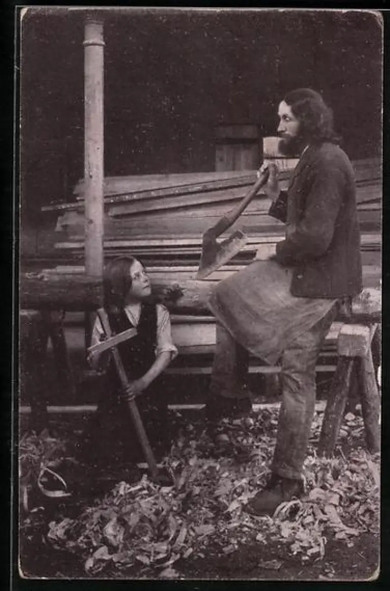 AK Erl, Passionsspiel 1913, Der Christusdarsteller Kaspar Pfisterer als Zimmermann mit seinem Sohne