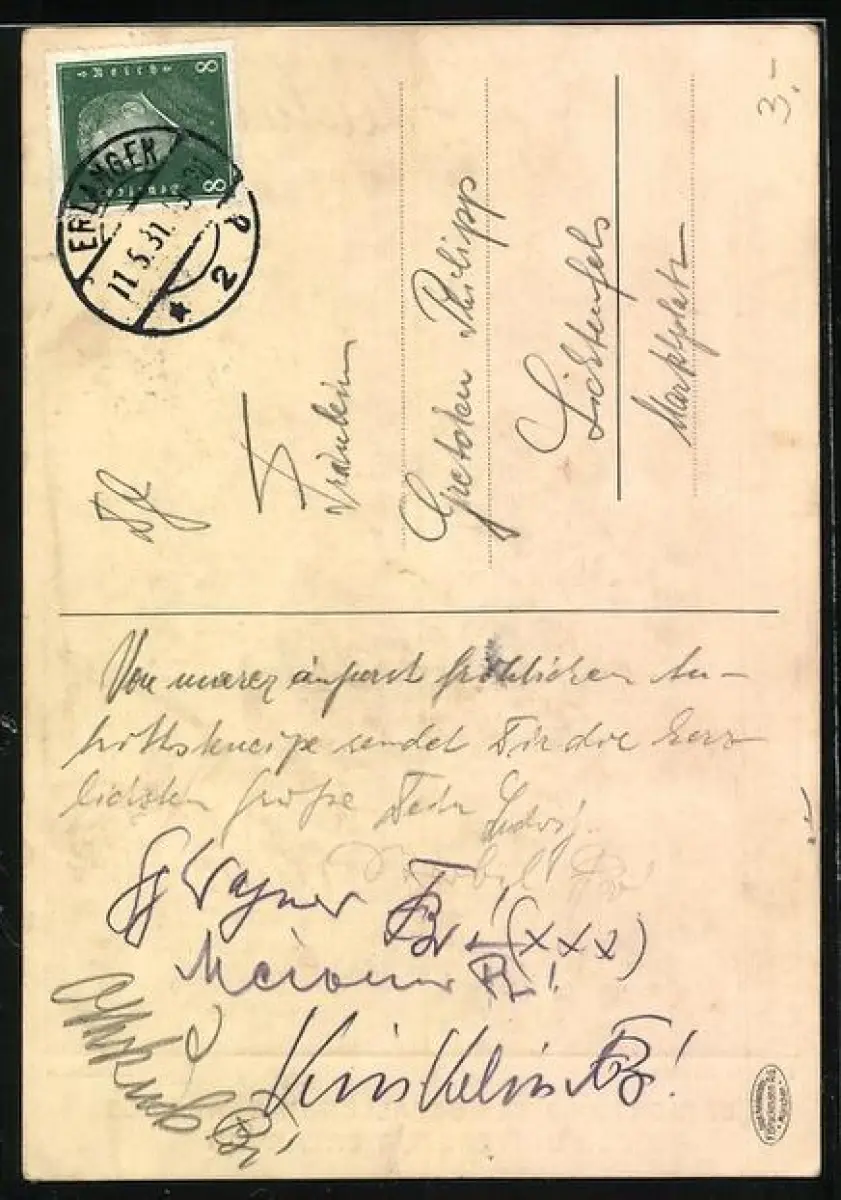 alte Ansichtskarte, gelaufen 1931, Einriss re. oben, Stempelspur