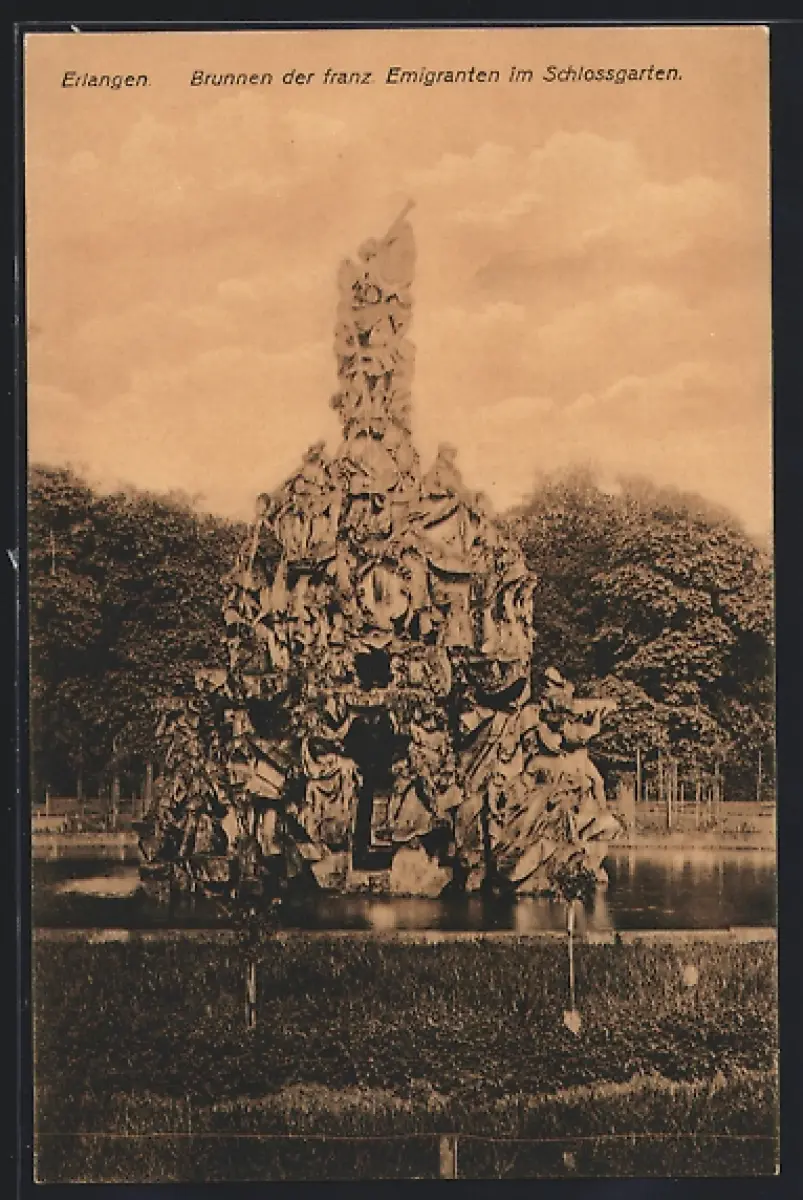 AK Erlangen, Brunnen der franz. Emigranten im Schlossgarten