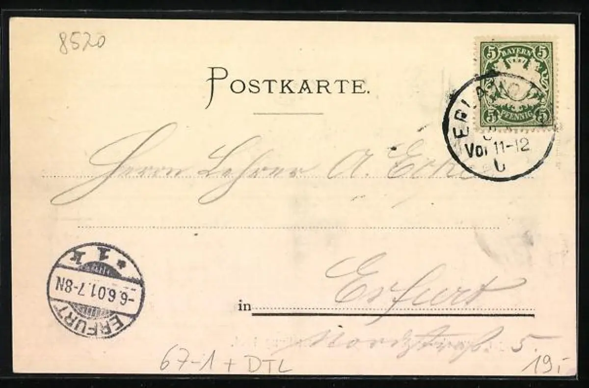 alte Ansichtskarte, gelaufen 1901, Stempelspur, guter Zustand
