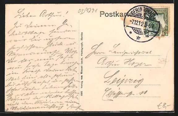 gelaufen 1912, rückseitig Klebe- und Papierreste, guter Zustand