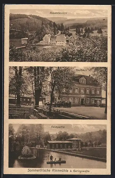 AK Erlbach /Geringswalde, Gasthaus Rinnmühle, Teichpartie, Gesamtansicht aus der Vogelschau