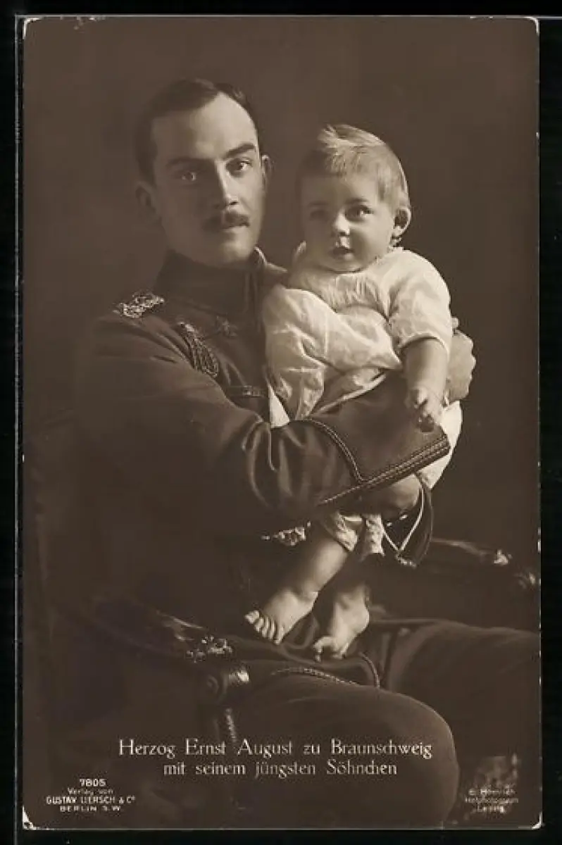 AK Ernst August Herzog von Braunschweig mit seinem Erbprinzen auf dem Arm