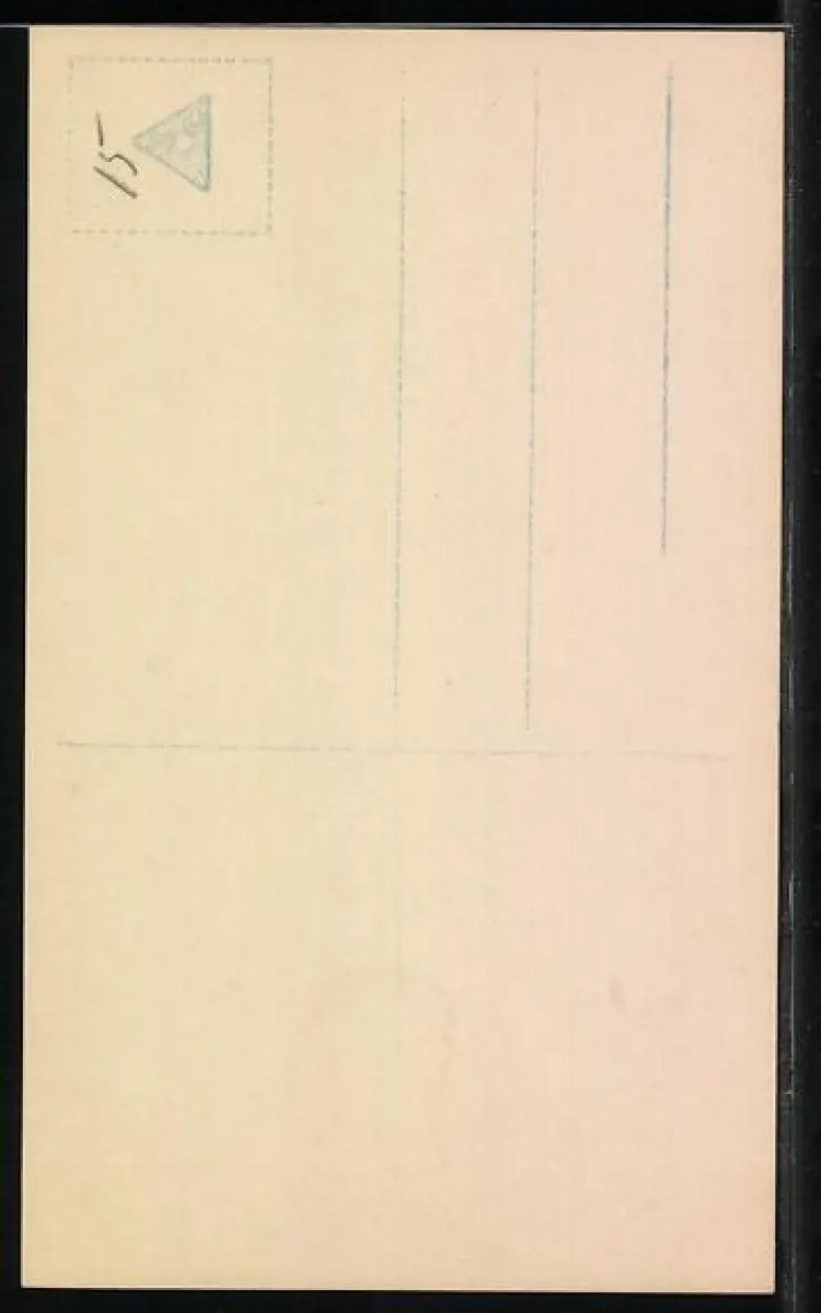 Personenbezogene Daten auf der Rückseite der Karte wurden durch blauen Textmarker unkenntlich gemacht. Die blauen Stellen sind auf die Vorderseite durchgeweicht und wirken sich negativ auf das Postkartenfoto aus