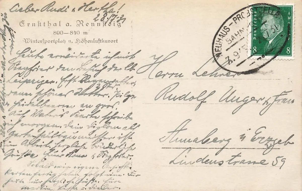 Rückseite: gelaufen 1928