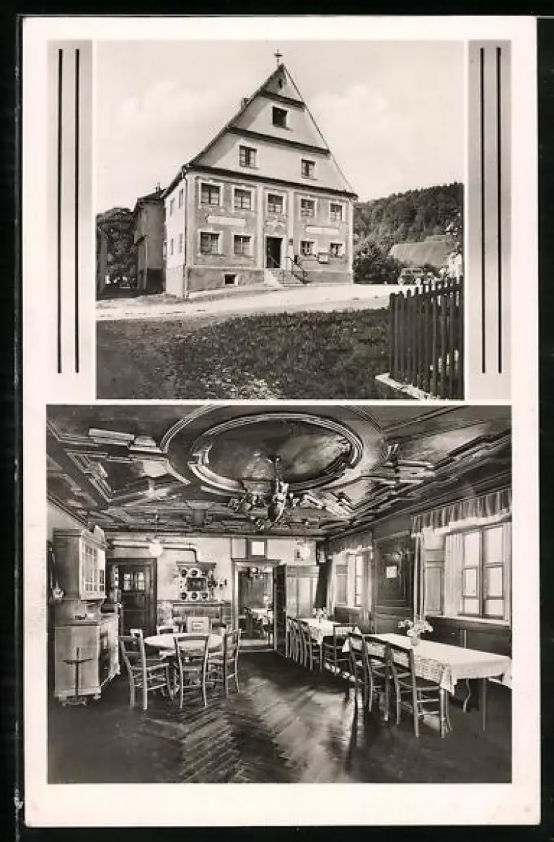 AK Erolzheim, Gasthaus zum Adler, Inh. A. Dolderer, Aussenansicht und Gaststube