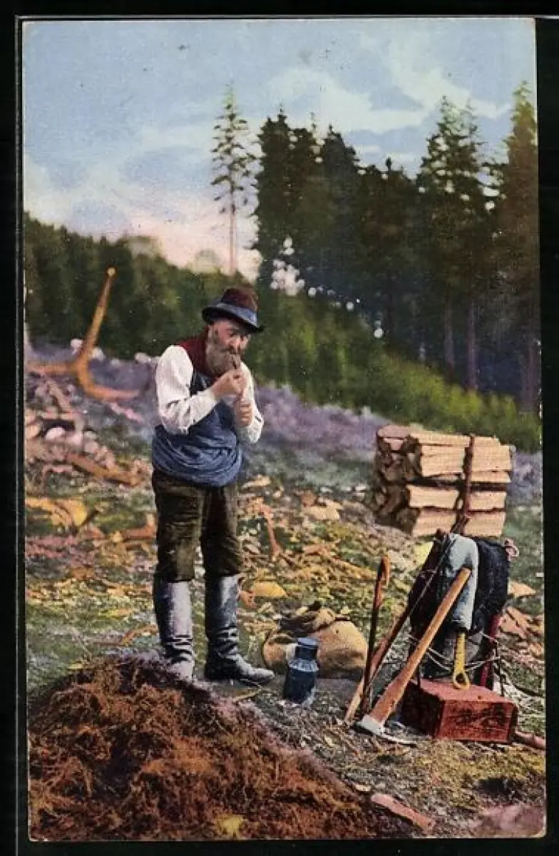 AK Erst nach ein Pfeifchen, sächsische Tracht