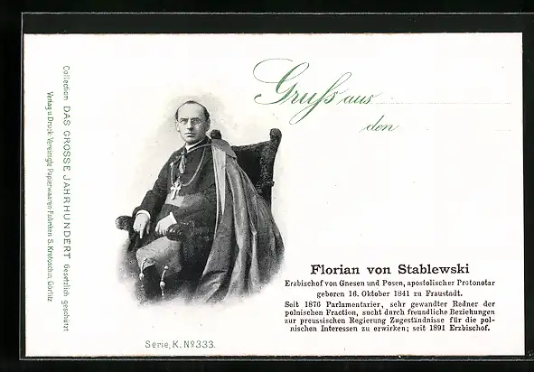 AK Erzbischof von Gnesen und Posen, Florian von Stablewski, auf einem Stuhl sitzend