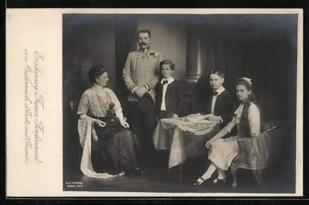 AK Erzherzog Franz Ferdinand von Österreich in Uniform nebst Frau und Kindern