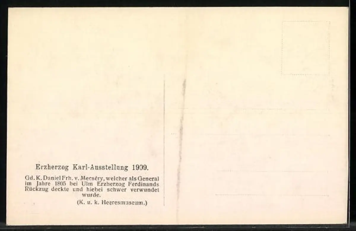AK Erzherzog Karl-Ausstellung 1909, General der Kavallerie Frh. von Mecséry, Kopfverletzung von 1805