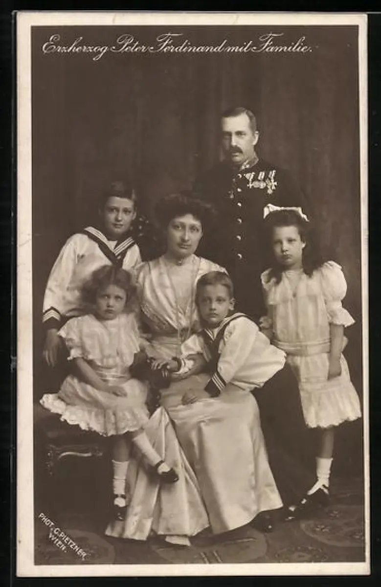 AK Erzherzog Peter Ferdinand von Österreich in Uniform mit seiner Familie