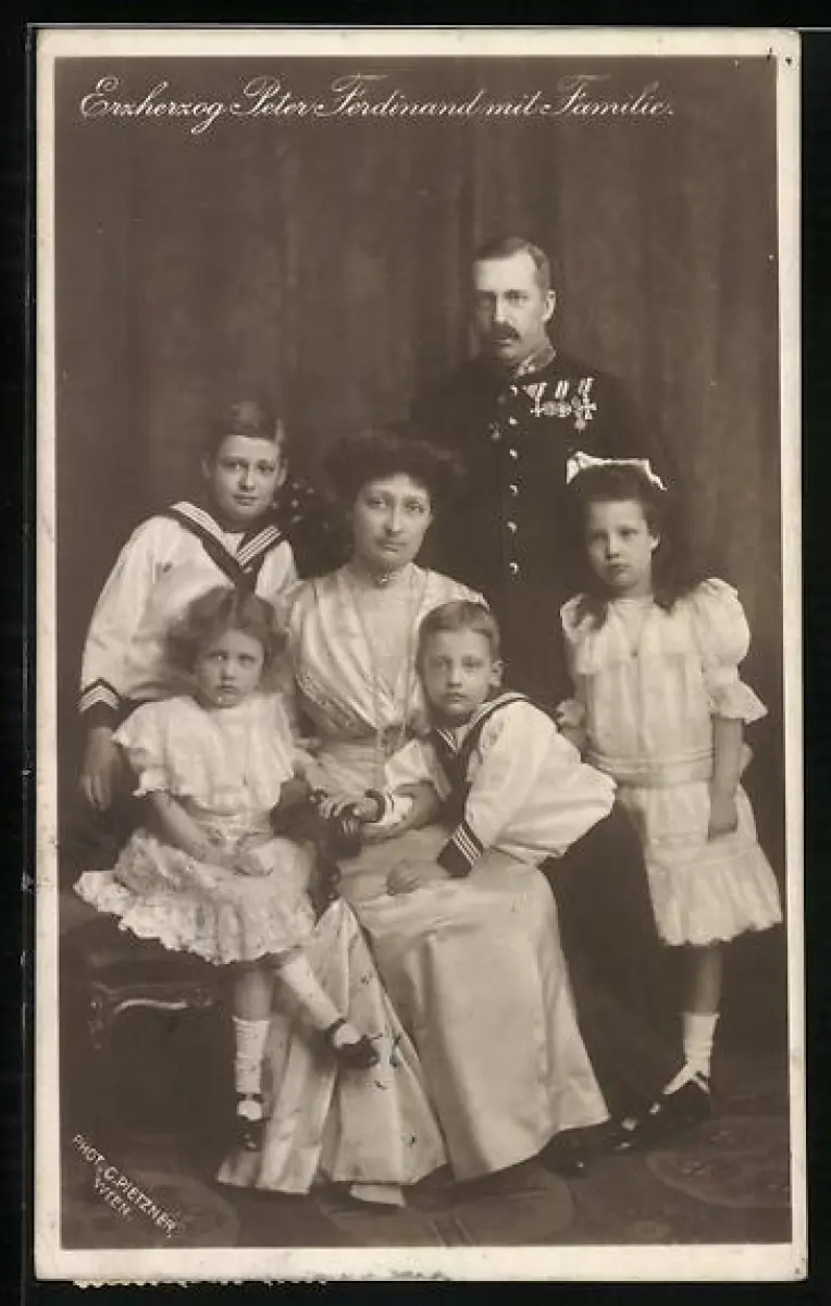 AK Erzherzog Peter Ferdinand von Österreich in Uniform mit seiner Familie