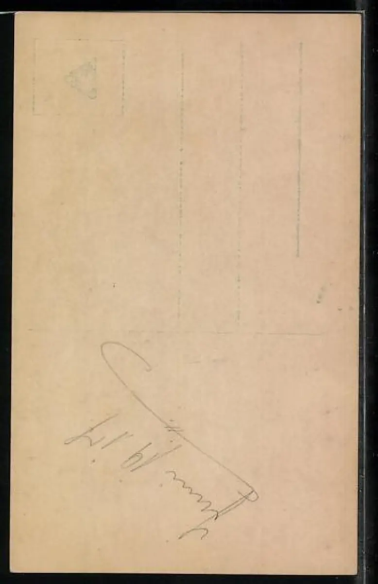 Personenbezogene Daten auf der Rückseite der Karte wurden durch blauen Textmarker unkenntlich gemacht. Die blauen Stellen sind auf die Vorderseite durchgeweicht und wirken sich negativ auf das Postkartenfoto aus