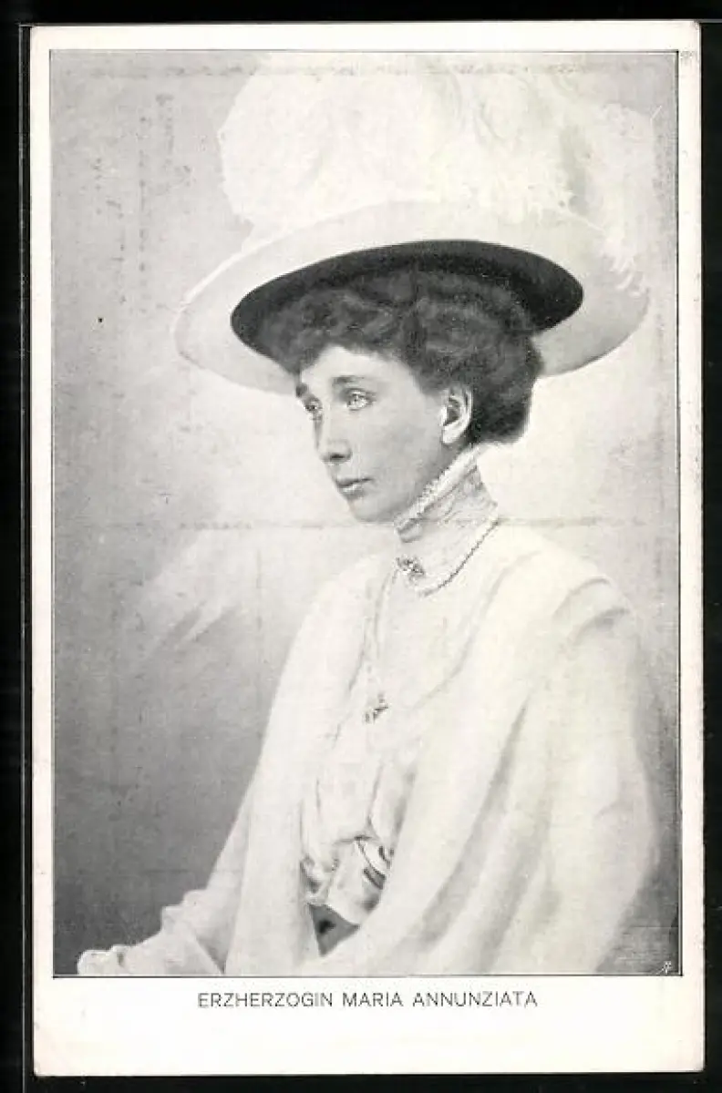 AK Erzherzogin Maria Annunziata von Österreich mit grossem Federhut und Perlenkette