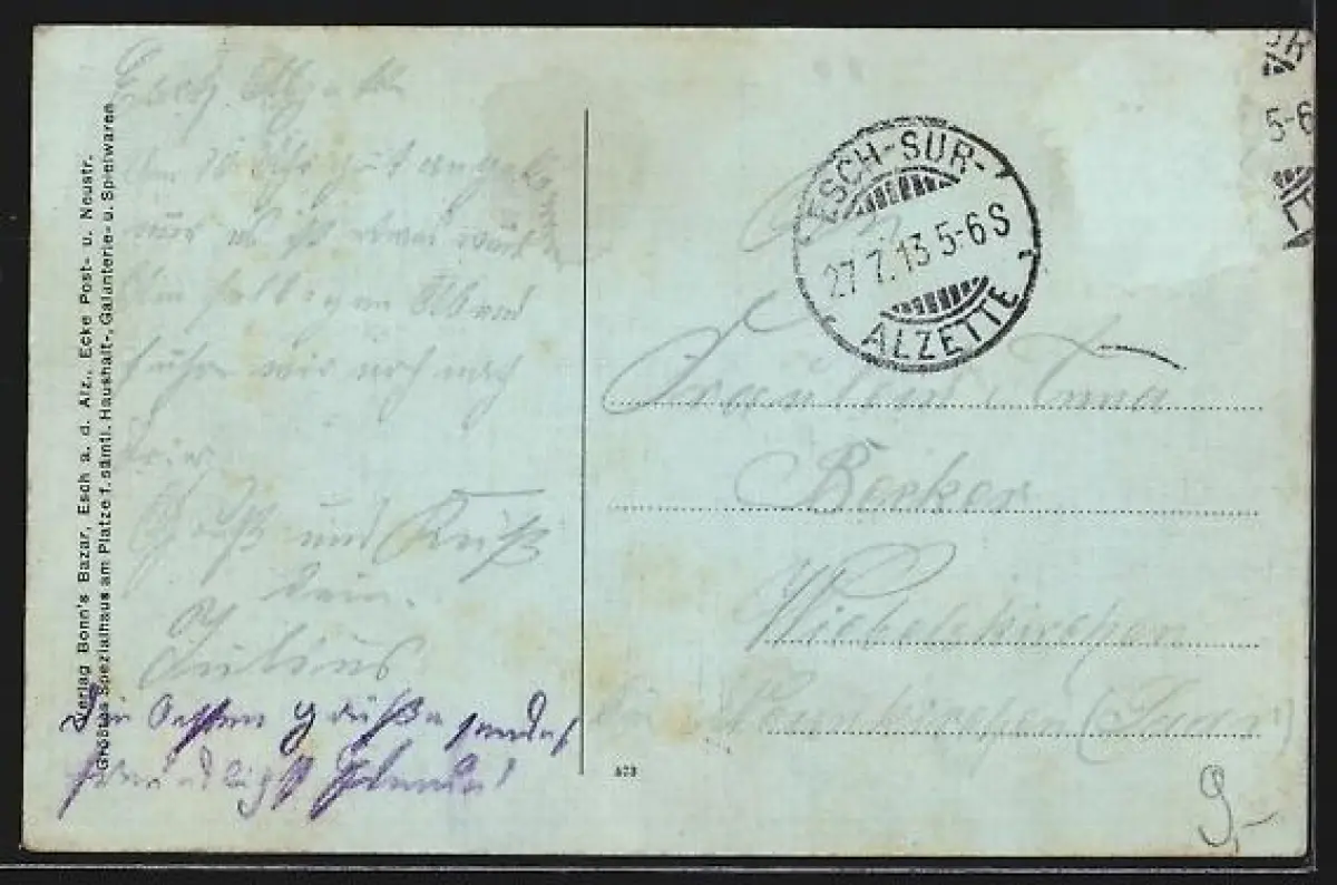 alte Ansichtskarte, gelaufen 1913, Briefmarke entfernt, rückseitig Oberflächenschaden, guter Zustand