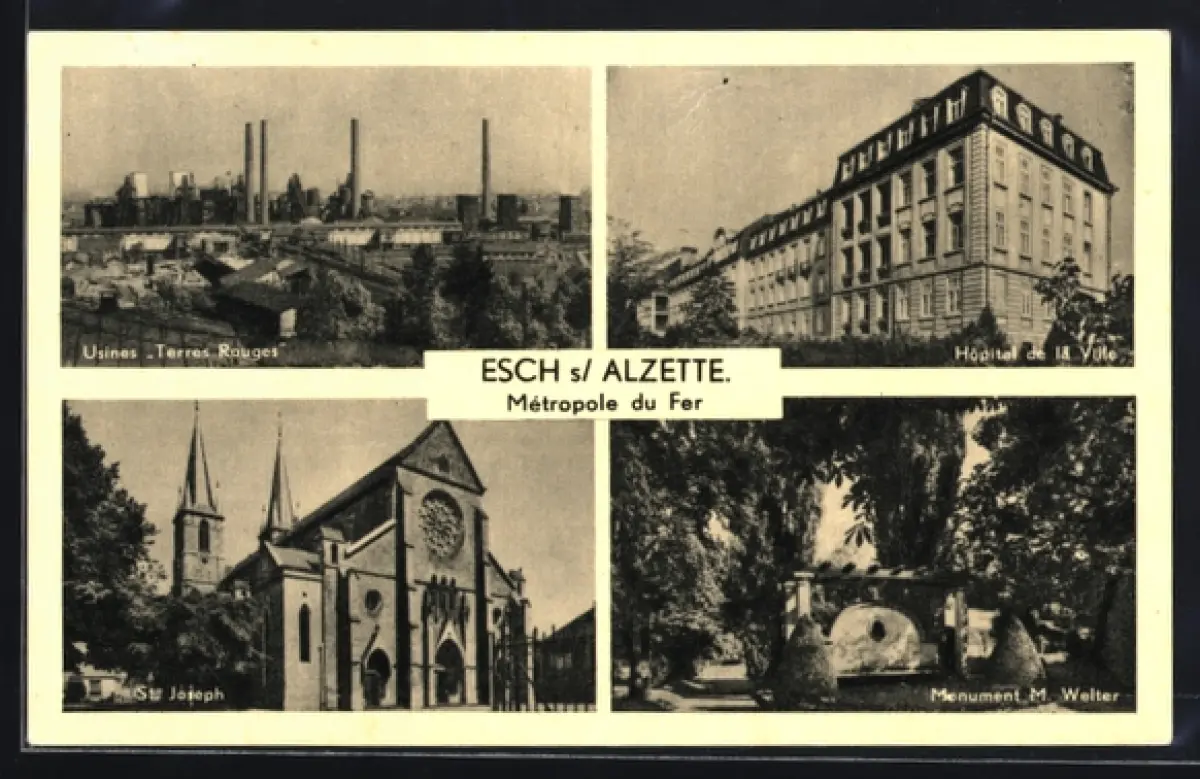 AK Esch s/ Alzette, Usines Terres Rouges, Hopital de la Ville, Monument M. Welter