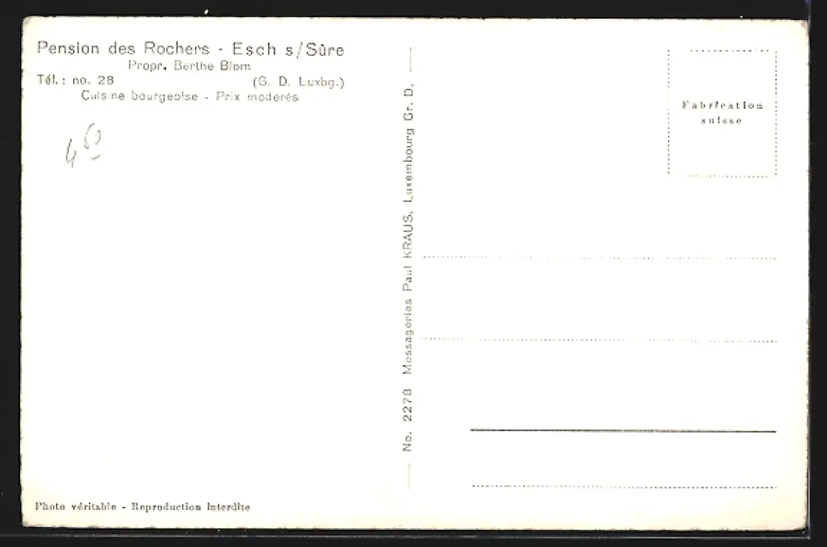 AK Esch s. Sûre, Pension des Rochers, Propr. Berthe Blom