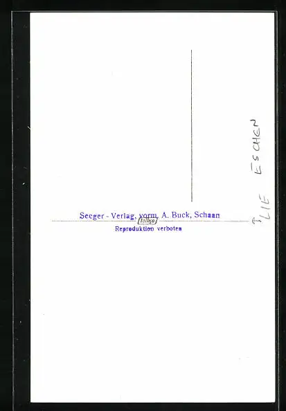 Personenbezogene Daten auf der Rückseite der Karte wurden durch blauen Textmarker unkenntlich gemacht. Die blauen Stellen sind auf die Vorderseite durchgeweicht und wirken sich negativ auf das Postkartenfoto aus