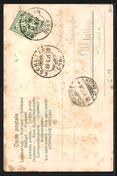 alte Ansichtskarte, gelaufen 1905, fleckig