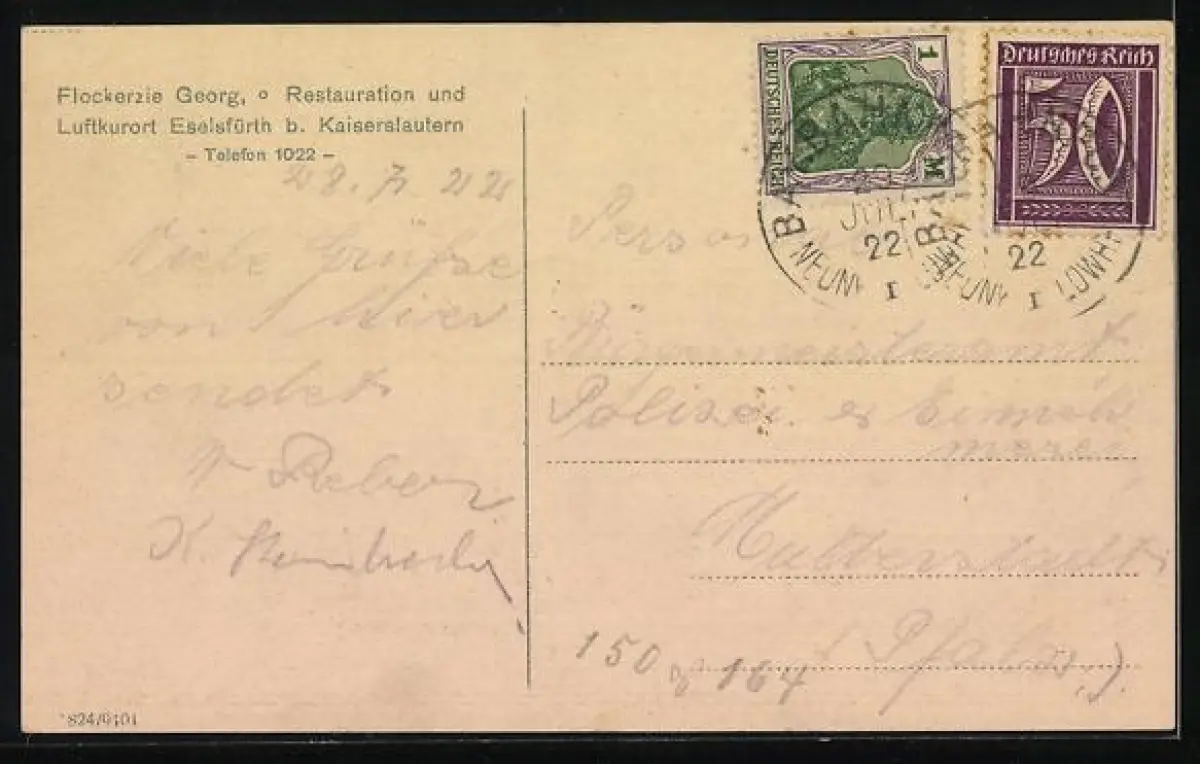 AK Eselsfürth b. Kaiserslautern, Gasthaus Georg Flockerzie