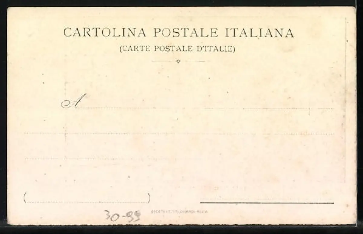 Personenbezogene Daten auf der Rückseite der Karte wurden durch blauen Textmarker unkenntlich gemacht. Die blauen Stellen sind auf die Vorderseite durchgeweicht und wirken sich negativ auf das Postkartenfoto aus