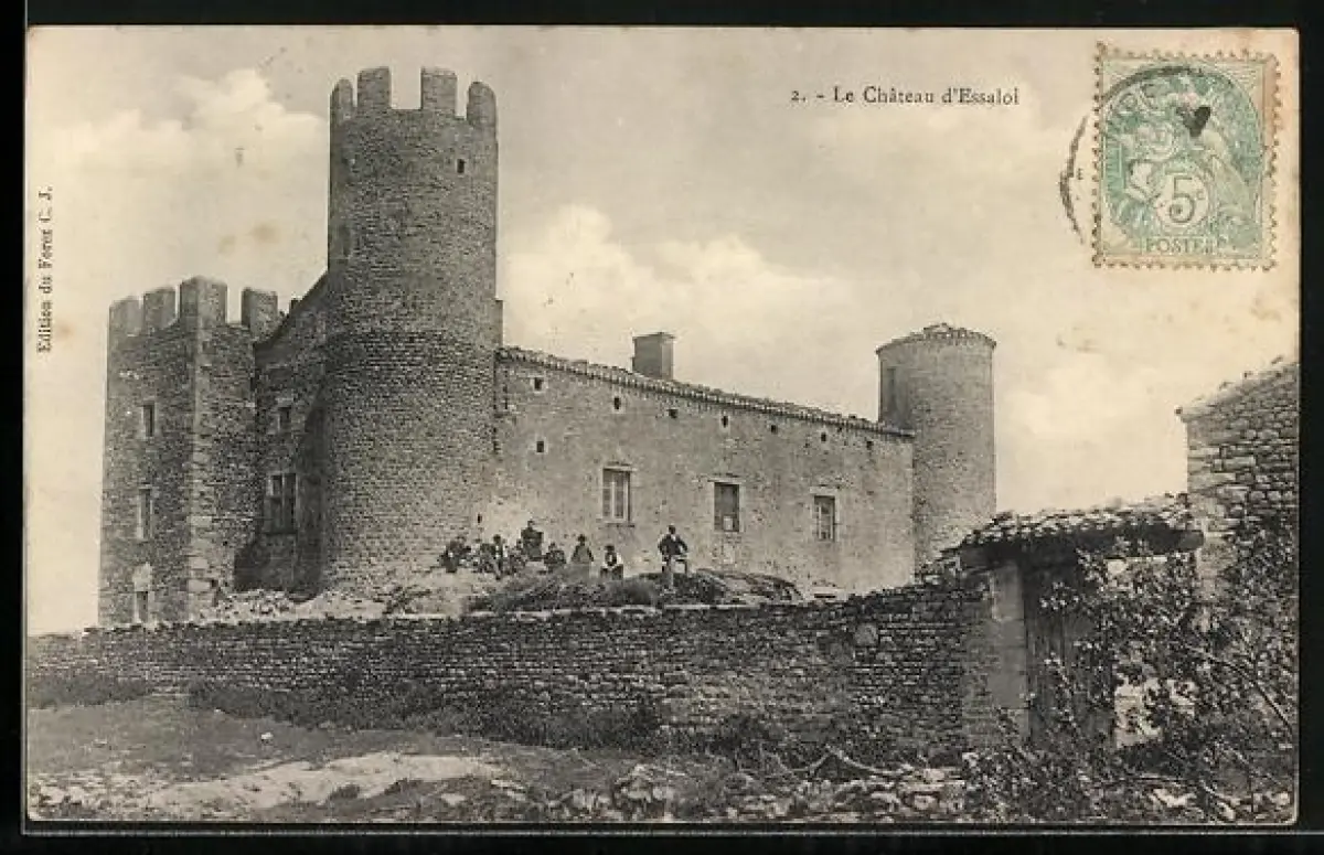 AK Essaloi, Le Château d`Essalois avec des visiteurs devant les remparts en pierre