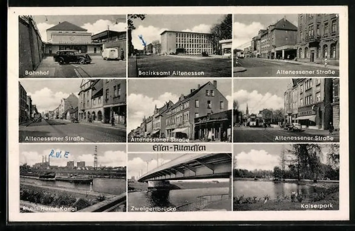 AK Essen-Altenessen, Bahnhof, Bezirksamt Altenessen, Altenessener Strasse, Rhein-Herne-Kanal, Kaiserpark