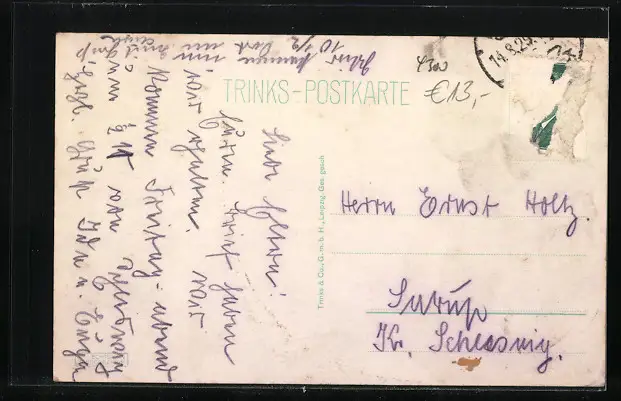 alte Ansichtskarte, gelaufen, Briefmarke entfernt, guter Zustand