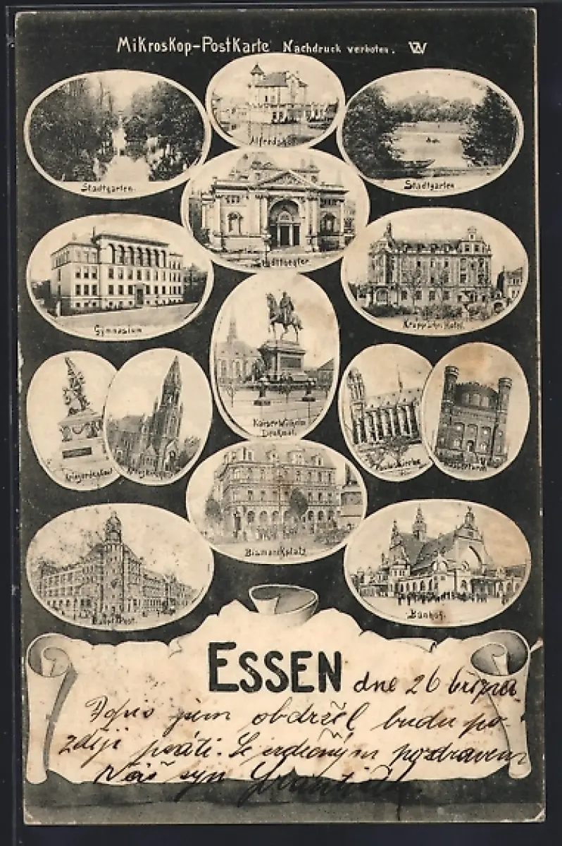 AK Essen, Bahnhof, Krupp`sches Hotel, Bismarckplatz, Alfredshof