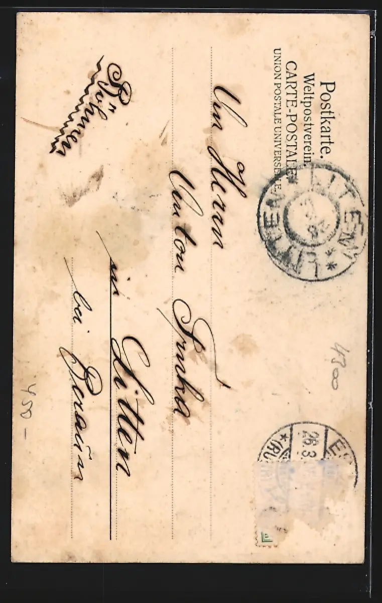 alte Ansichtskarte, gelaufen, Briefmarke entfernt, guter Zustand