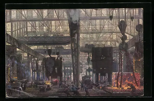 AK Essen, Gussstahlfabrik, Pressbau II, Innenansicht mit Fabrikarbeitern