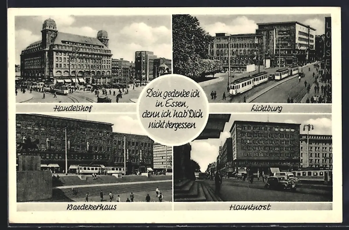 AK Essen, Handelshof, Lichtburg, Baedekerhaus, Hauptpost