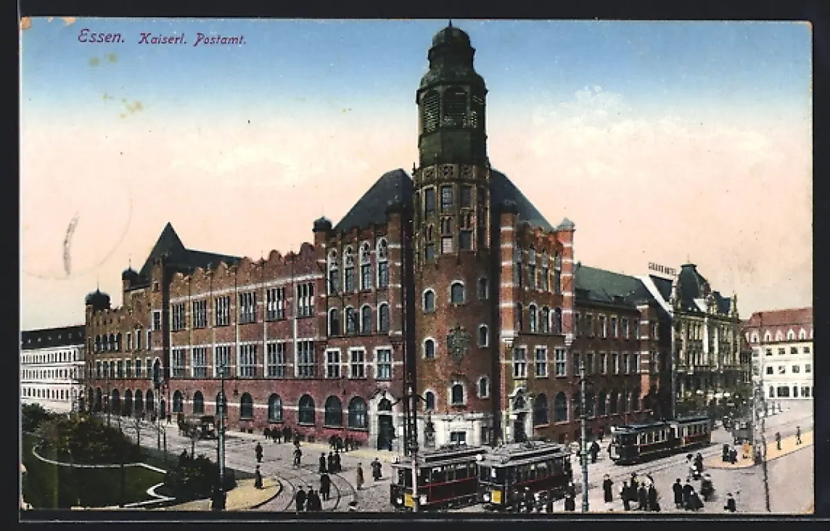 AK Essen, Kaiserl. Postamt mit Strassenbahn
