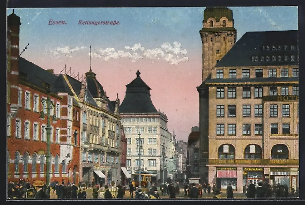 AK Essen, Kettwigerstrasse, Strassenszene mit Geschäften