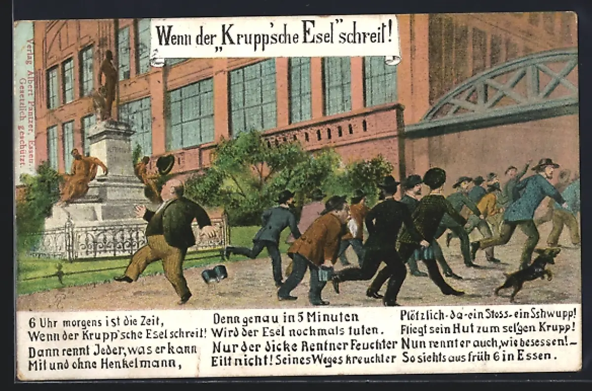AK Essen, Kruppwerke, Wenn der Krupp`sche Esel schreit!, Arbeiter stürmen in die Fabrik