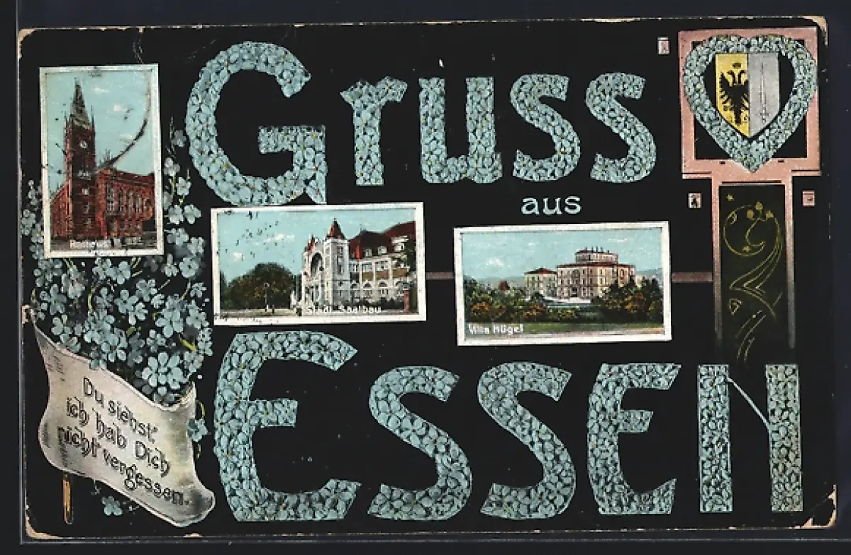 AK Essen, Rathaus, Städt. Saalbau, Villa Hügel