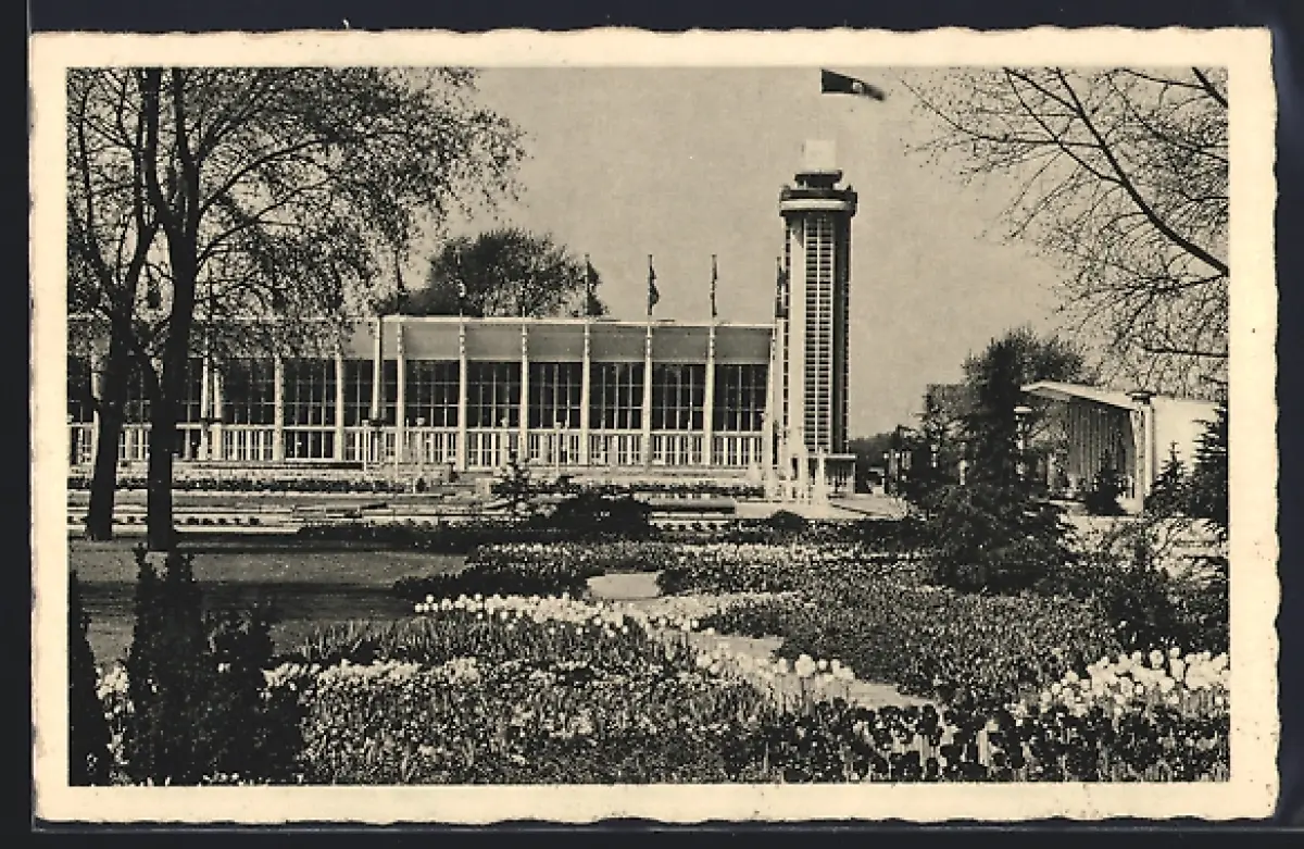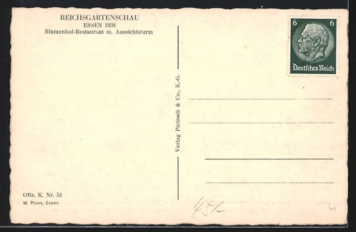AK Essen, Reichsgartenschau 1938, Blumenhof-Restaurant m. Aussichtsturm,