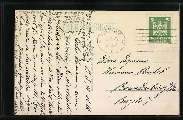 alte Ansichtskarte, gelaufen 1926, Eckknick unten re., guter Zustand