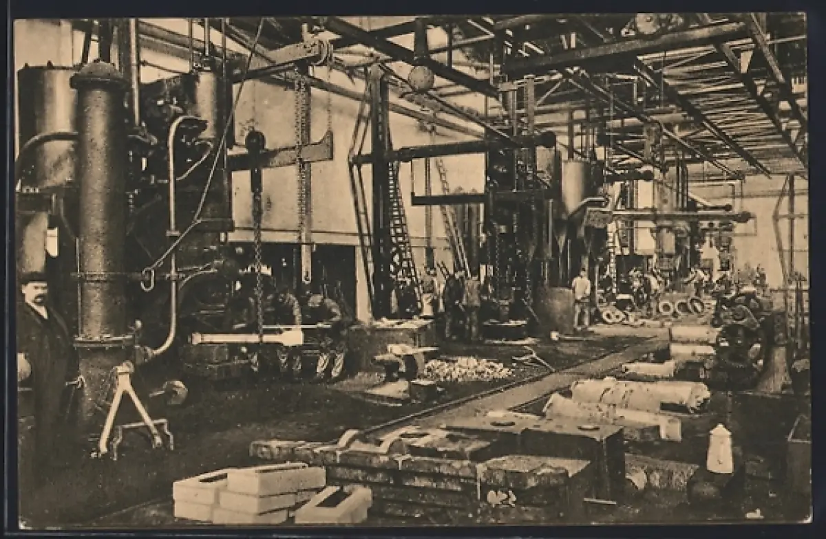 AK Essen / Ruhr, Fabrikarbeiter im Hammerwerk der Krupp`s Fabrik